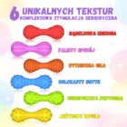Ściskanie i obracanie wzmacnia palce i dłonie, a różne faktury stymulują zmysł dotyku, wspierając rozwój sensoryczny.