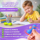 Bodźce dotykowe i ruchowe podczas ściskania rozładowują nadmiar energii w dłoniach, co wspiera samoregulację i zmniejsza napięcie oraz stres.