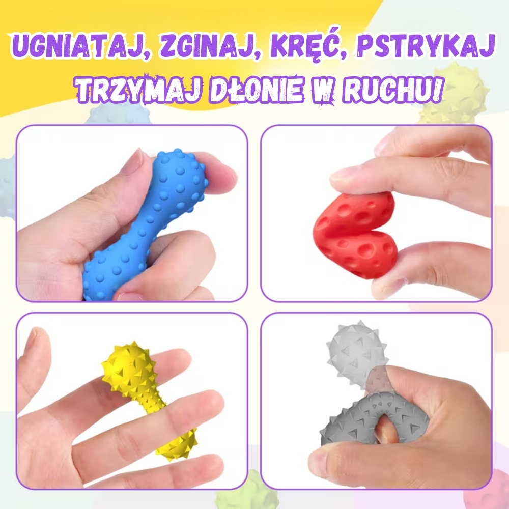 Hantelki Sensoryczne do Ugniatania, Zginania, Kręcenia i Pstrykania (6szt.)
