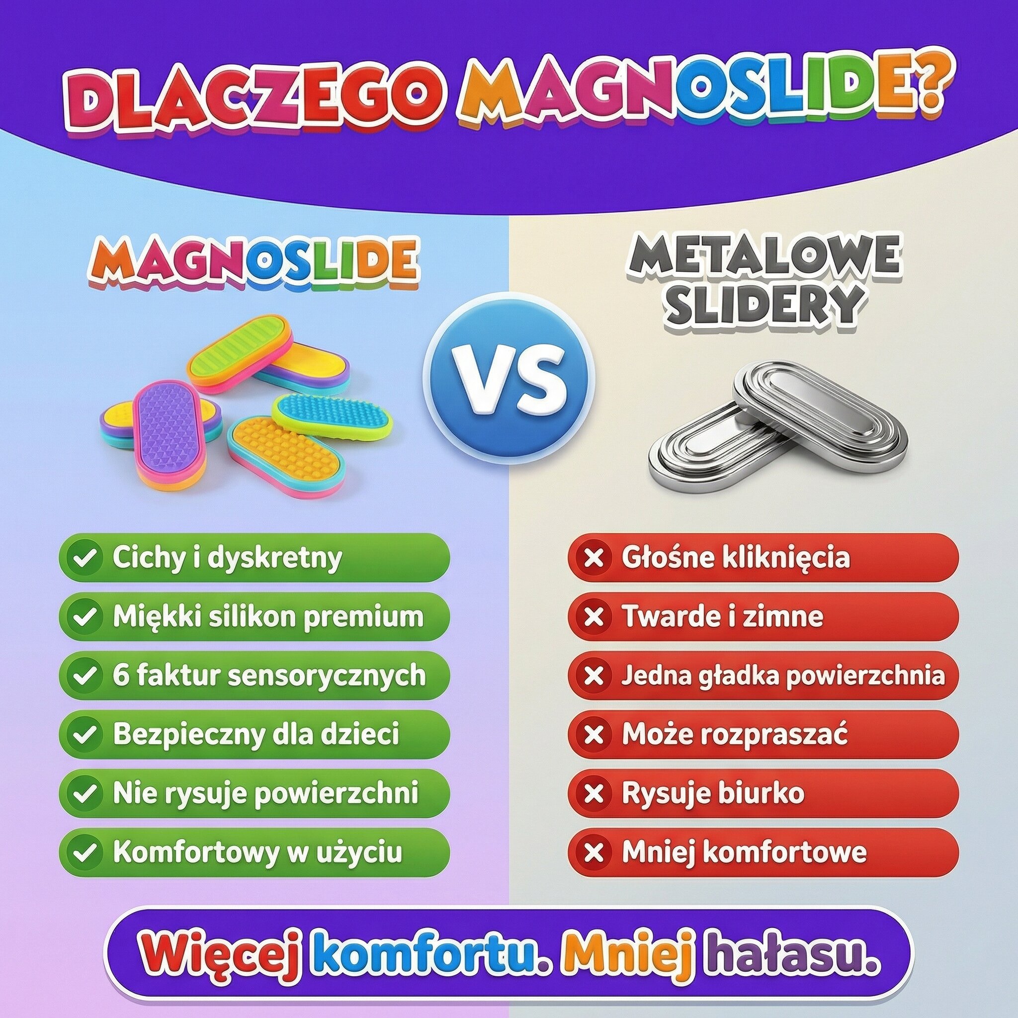 MagnoSlide pomaga redukować napięcie i ograniczać nerwowe nawyki, takie jak skubanie skórek, obgryzanie paznokci czy ciągłe wiercenie się.